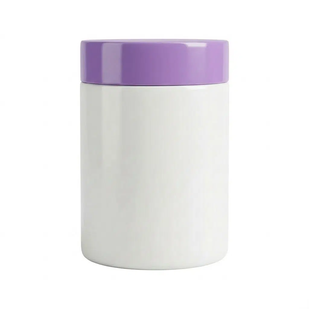 Pote de 1kg Branco Leitoso com Tampa Lilás: Pureza e Elegância para Seus Cosméticos